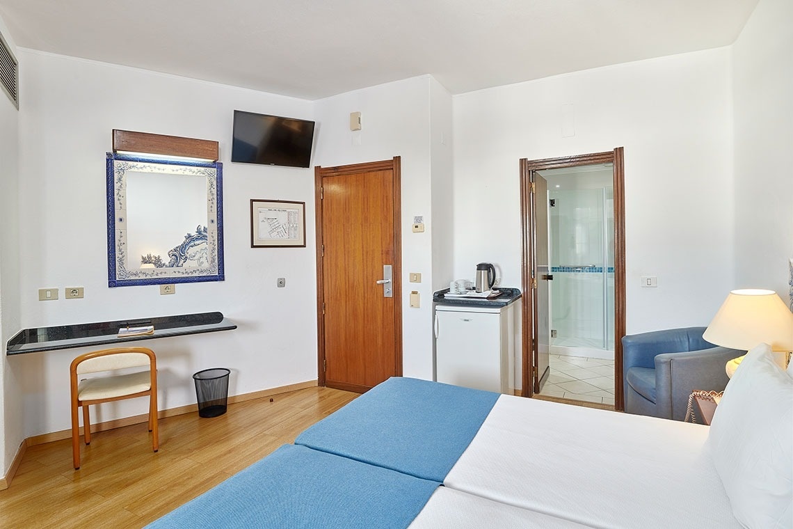 Room facilities: Landscape view, sofa bed, balcony or terrace, kitchenette, fridge, microwave, electric coffee maker, toaster, electric cooker with 2 rings, bathroom with shower, hairdryer, radio, satellite TV with 30 channels, telephone.
